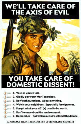 We can expect much more of these tactics on the homeland front. Just as civil liberties violations escalated when Washington lost control over the FTAA process, so will repression increase as the Bush crew faces the ultimate threat: losing control over the White House.