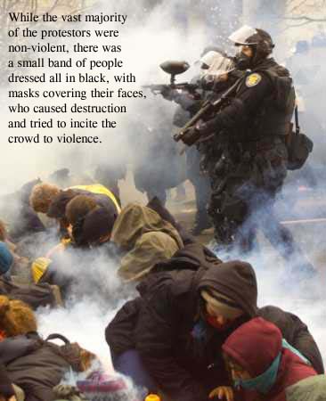 Outside, we experienced something distinctly heavier: "War Lite." In fact, the more control the U.S. trade representatives lost at the negotiating table, the more raw power the police exerted on the streets.
