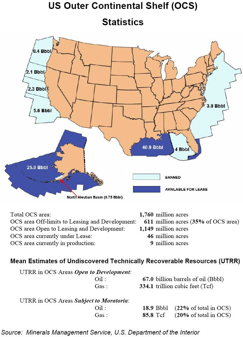 The bottom line - nearly all known reserves of offshore oil in the US are in the Gulf of Mexico, in areas that have been drilled for decades.